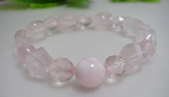 2点目は、ピンクカルサイトとツイストカット・64面カットとローズクォーツを使ったブレスレットです。