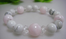 1点目は、ピンクカルサイトとハウライト、ボタンカット水晶を使ったブレスレットです。