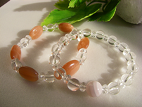 1点目は、ピンクカルサイトとハウライト、ボタンカット水晶を使ったブレスレットです。