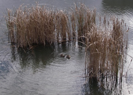 水面を綺麗な波紋を残しながら泳ぐ水鳥たちに視線を奪われながら歩いていると2羽の水鳥が向かい合わせでグルグルグルグルと延々と回っているのがおかしくてデジカメを取り出し撮影したのが、上の写真です。