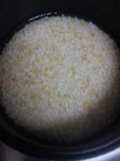 わかりにくいかもしれないけど、白米に発芽玄米を加えて炊いてみた。(実際は、今炊いてるところ)