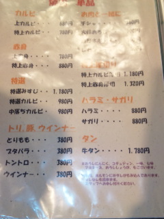 今日は、この他には『ホルモン』『丸腸』『冷麺(辛いやつで正式な名前は忘れたw)』とサイドメニューのナムルの盛り合わせ、野菜盛り合わせだったかな。。。