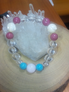 今回は、ピンクカルサイトとマザーオブパールとロードナイトとターコイズと水晶のブレスレットです☆